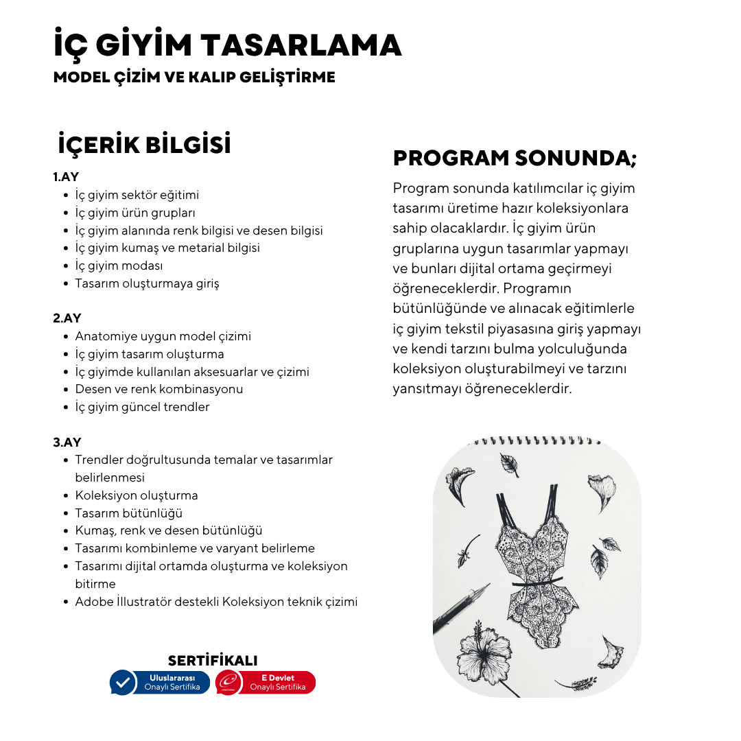 Fashion Designers, students studying in Fashion Design departments of universities or high schools or those preparing for school, those who want to prepare a Fashion Portfolio, stylists, Model Makers, those who want to advance in their Fashion Design career and anyone who wants to design Underwear professionally or as a hobby can participate in the training.