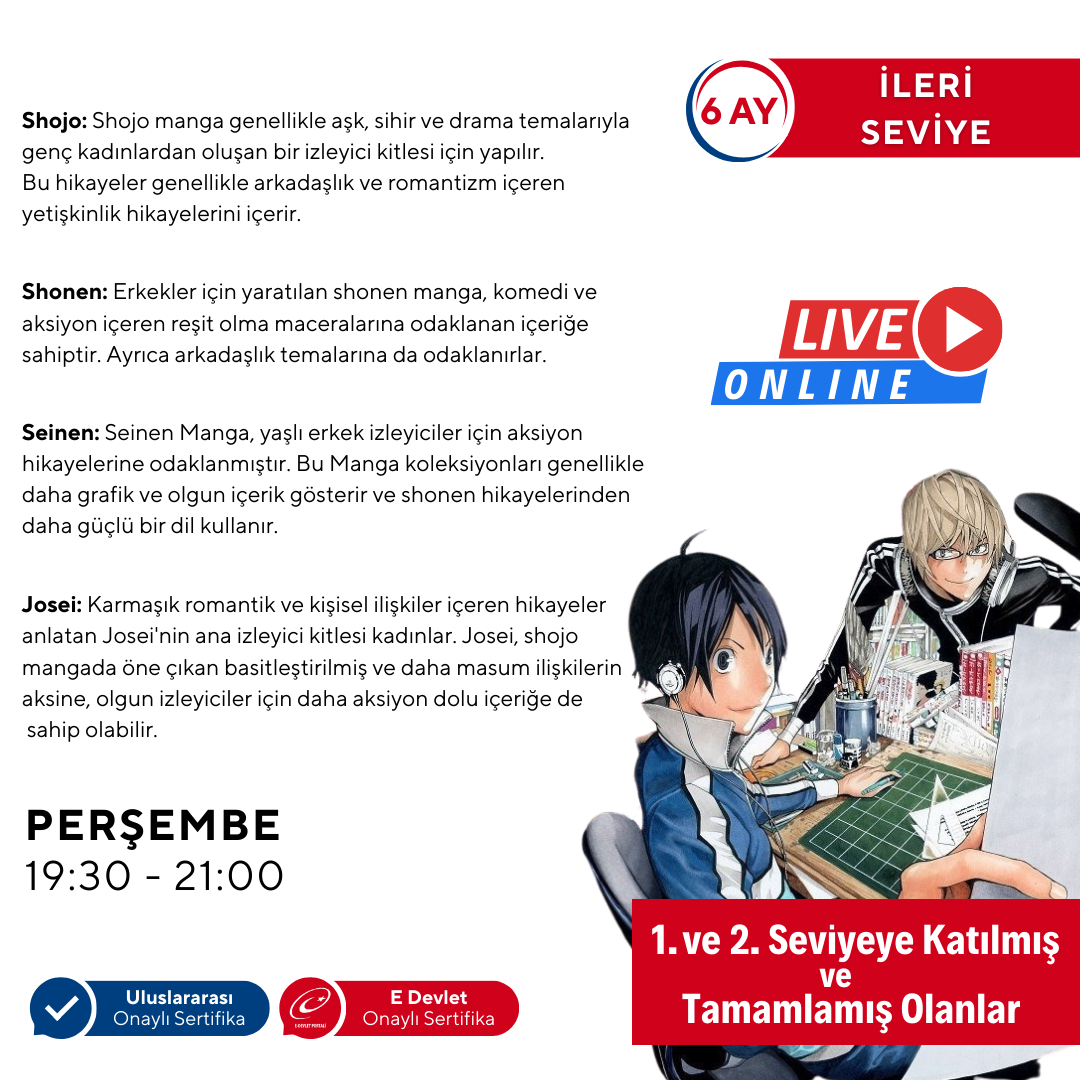 For Manga Drawing and Anime Characters, the manga drawing and anime workbook prepared by Atölye Ataşehir in accordance with the levels will be used.