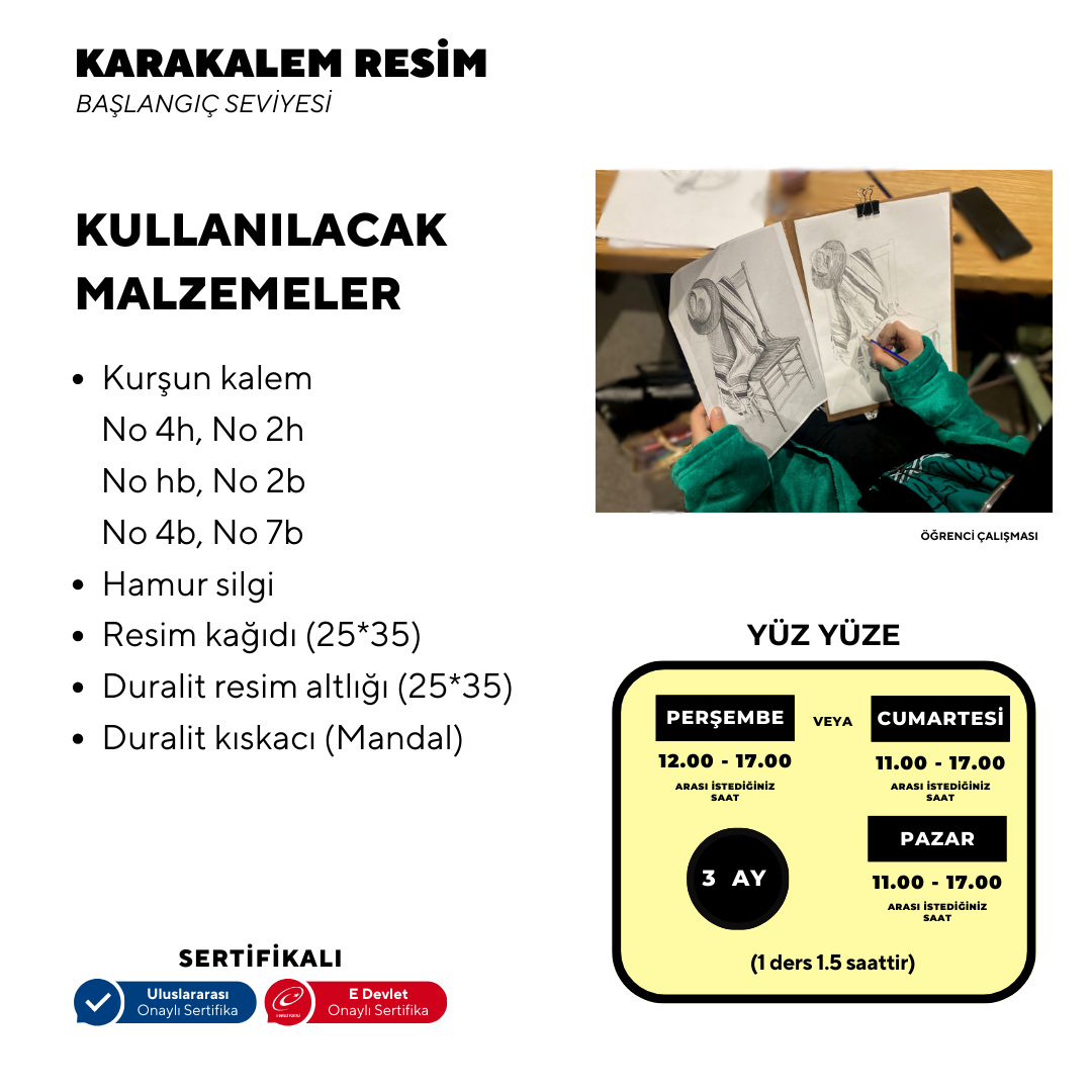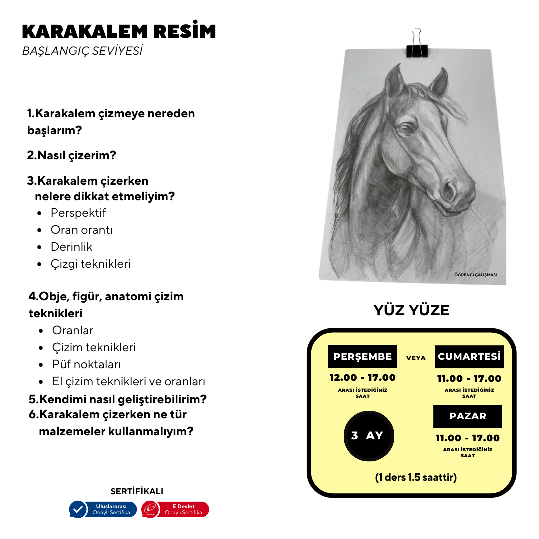 Paintings made by applying single color tone values ​​of black are called charcoal drawings. The aim is to explain the technique of charcoal drawing, to teach the necessary materials and preparations while painting, to transfer the drawing to paper, and to provide the knowledge and skills to apply the charcoal drawing technique.