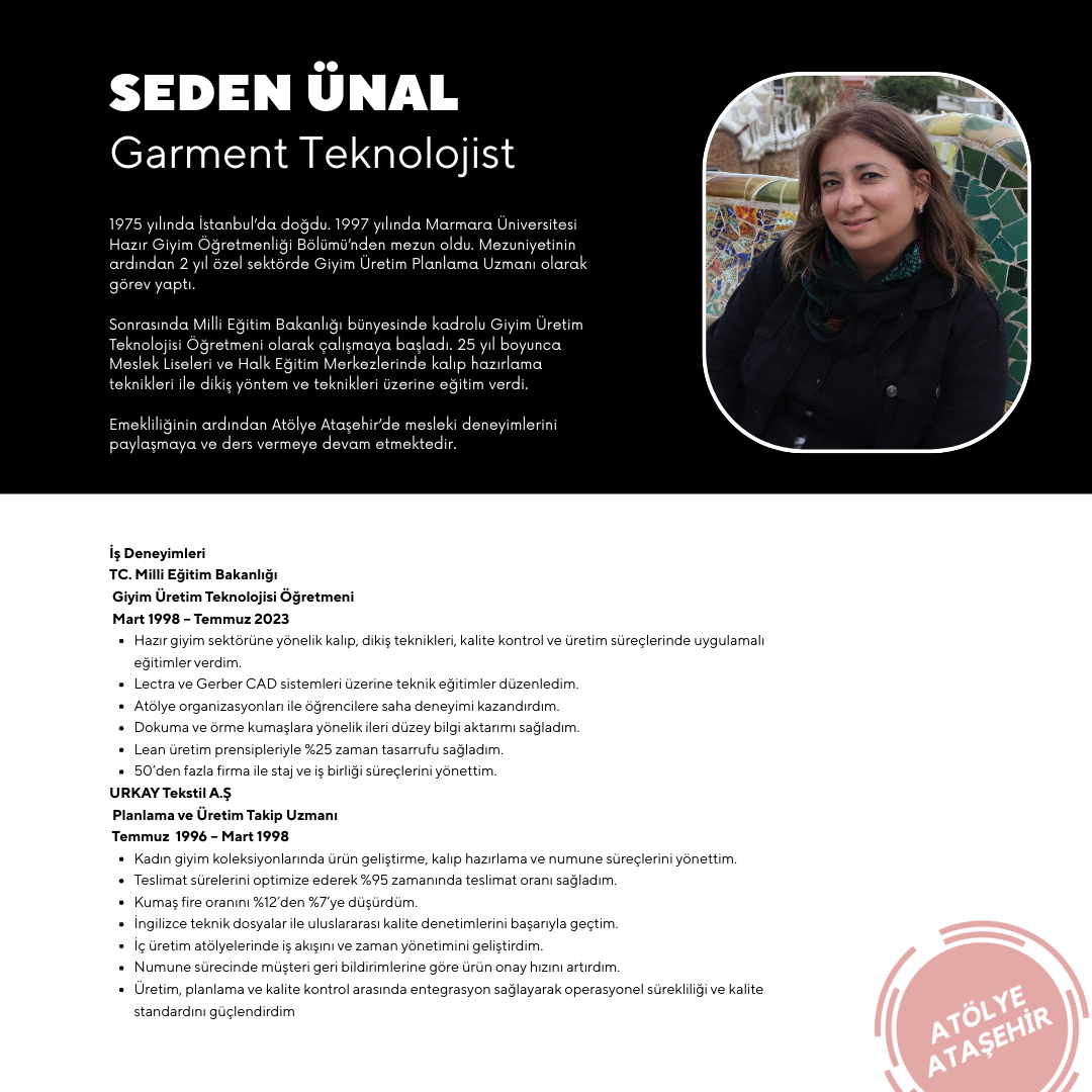 Since 1988, she has supplemented her fashion education, which she received during her university years, with international fashion fairs, fashion shows, and fashion workshops. Some of her training includes Color Analysis Specialization, Modeling and Pattern Knowledge, Retail Sales Methods, and Merchandising. From 1992 to 1994, she worked as a designer at Foli Giyim. From 1994 to 2016, she served as a Design Coordinator at Faik Sönmez Tekstil, overseeing and controlling the design process from model creation and fabric purchasing to product arrival in the warehouse. Since 2016, she has been consulting for corporate clients, creating freelance collections, styling, and providing individual consulting services, including color and size consulting.