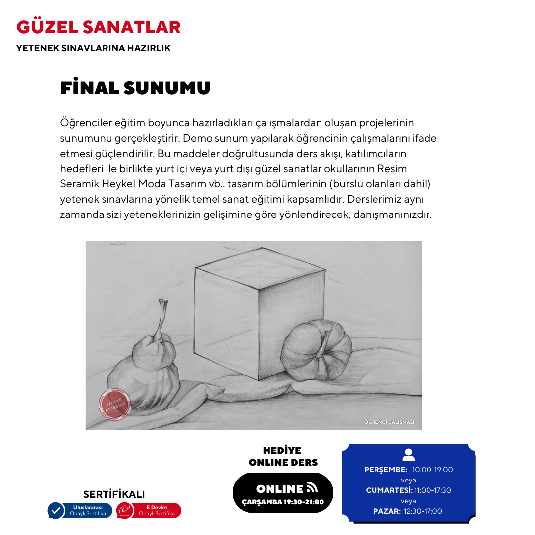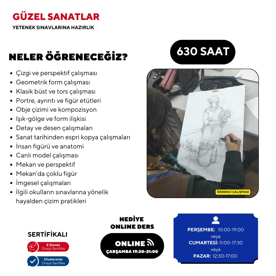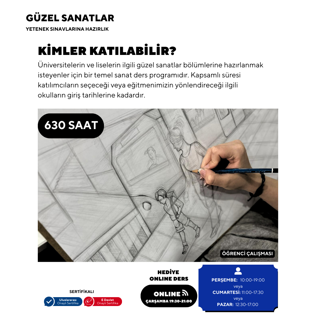 This is a foundational arts curriculum for those who wish to prepare for relevant fine arts departments at universities and high schools. Its comprehensive duration extends until the entrance dates of the relevant schools chosen by the participants or directed by our instructors.