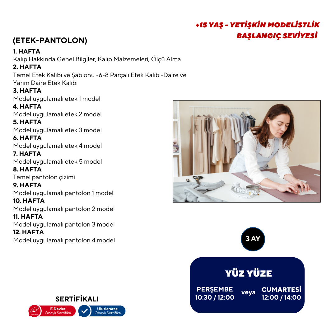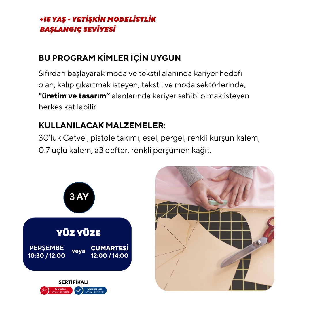 (Beginner Level) Anyone who wants to start a career in fashion and textiles from scratch, anyone who wants to make patterns, or anyone who wants to have a career in "production and design" in the textile and fashion sectors can participate.