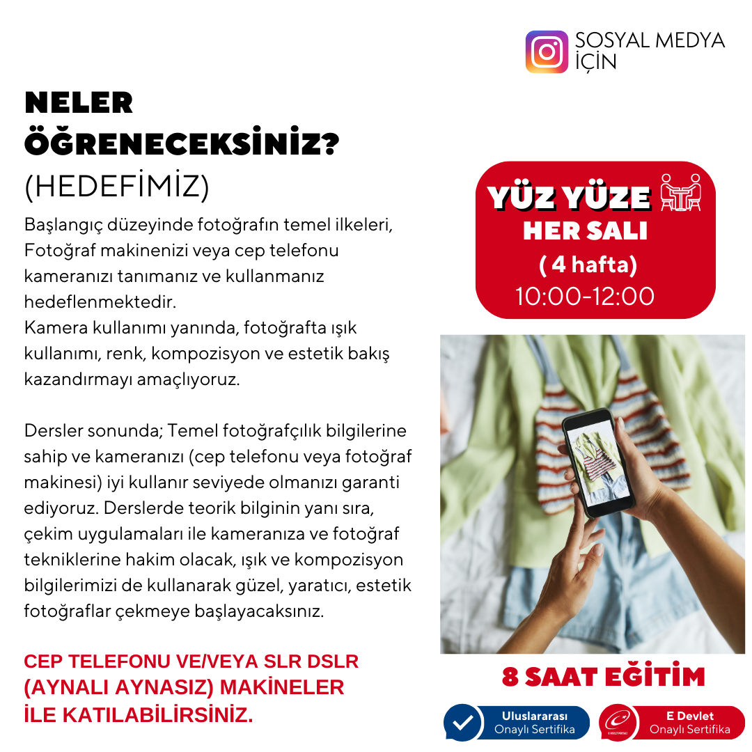 By learning these methods, you'll be able to take and share photos that reflect your product's brand personality. Courses are supported by practical applications, assignments, and research. Types, Structure, and Features of Cameras and Lenses Camera Accessories (Remote Control, Tripod, Filters, etc.) Focusing and Focusing Systems