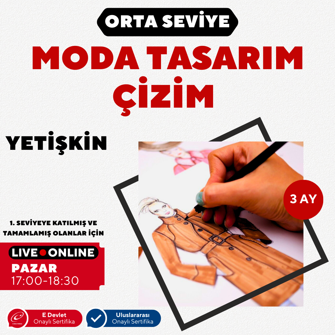 For basic fashion drawing techniques: Anatomy studies, Clothing drawing applications on the human figure, Fashion illustration and coloring, Clothing Design and clothing collection preparation process, Portfolio preparation for domestic and international fashion schools.