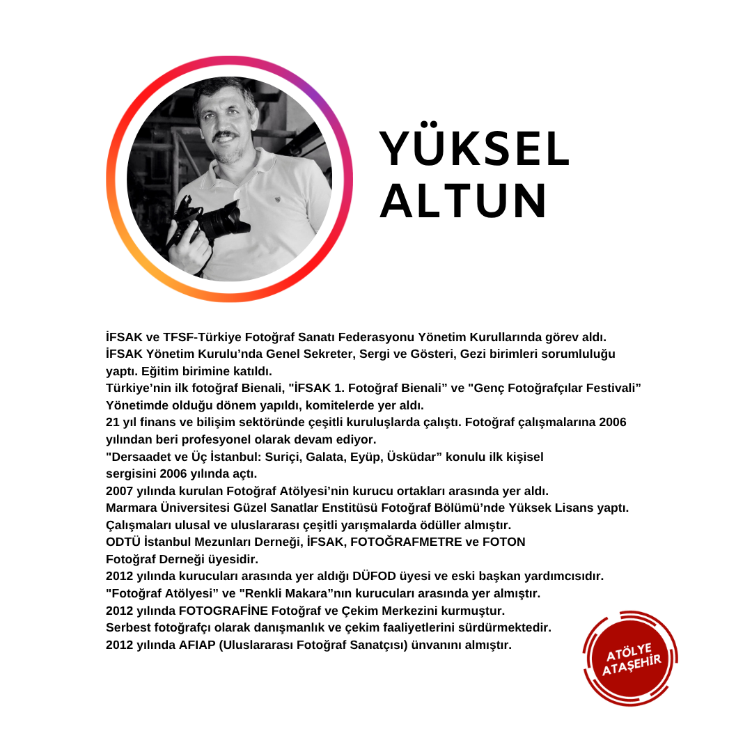 He is a member of METU Istanbul Alumni Association, IFSAK, FOTOĞRAFMETRE and FOTON Photography Association.